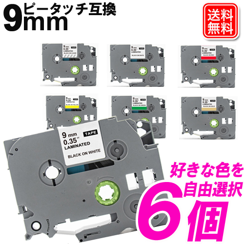 ブラザー ピータッチテープ 9mm 6個選べる ブラザー 互換テープカートリッジ 好きな色が選べる 自由選択 強粘着(copy)