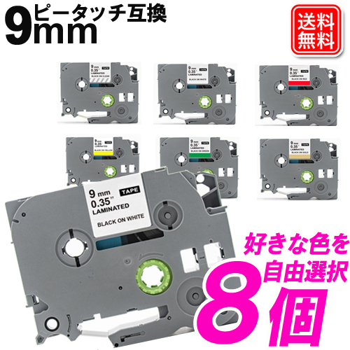 ブラザー ピータッチテープ 9mm 8個選べる ブラザー 互換テープカートリッジ 好きな色が選べる 自由選択 強粘着